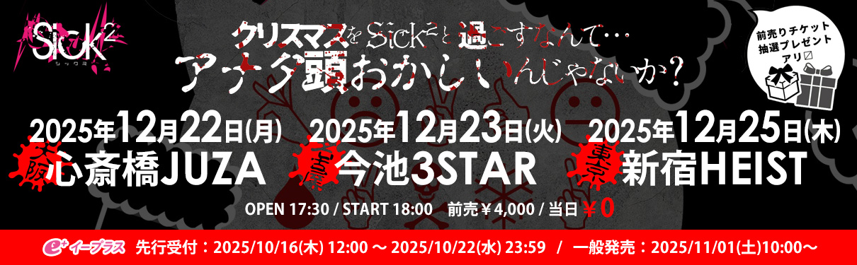Sick²クリスマスワンマンツアー2025『クリスマスをSick²と過ごすなんて…アナタ頭おかしいんじゃないか?』開催情報