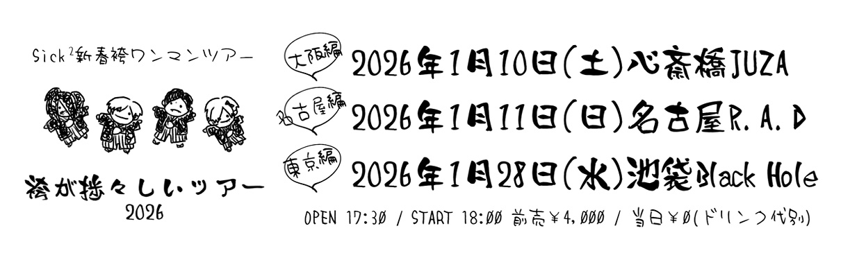 Sick²新春袴ワンマンツアー『袴が捗々しいツアー2026』開催決定