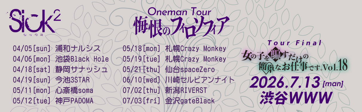 Sick² Oneman Tour『悔恨のフィロソフィア』開催決定!!
