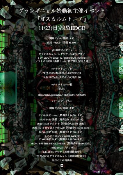 グランギニョル / ジグソウ / Sick2 / マキナ / LAY ABOUT WORLD / THE DEVIL INSIDE / ソラナキ / 泥眼 / 黒猫 / .cute / 捨て猫と宇宙人達