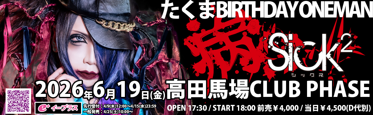 Sick²たくまバースデーワンマン『病Sick²』開催情報
